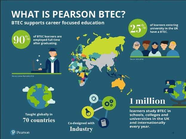 BTEC qualifications are career-focused, practical courses designed to give learners the knowledge, skills, and confidence to succeed in further education, university, or the workplace. They are widely recognised by universities and employers across the world